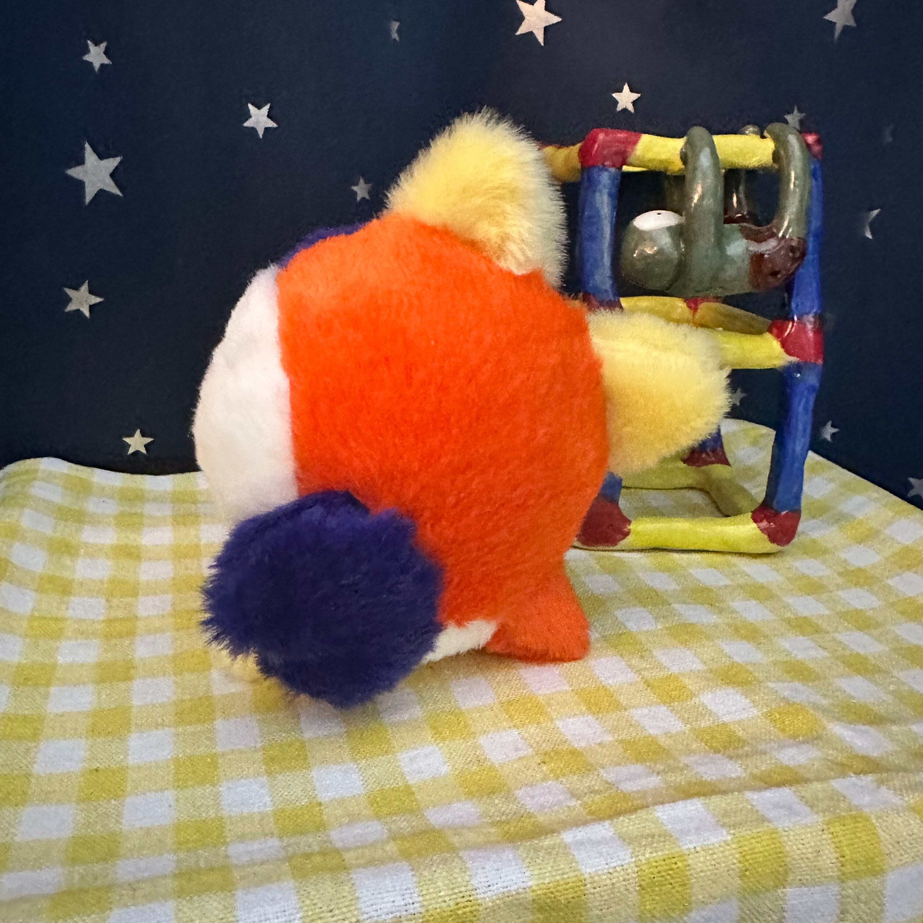 足と尻尾で自立するのでわたをこねこねしながらいい位置を探してあげてください❣️
