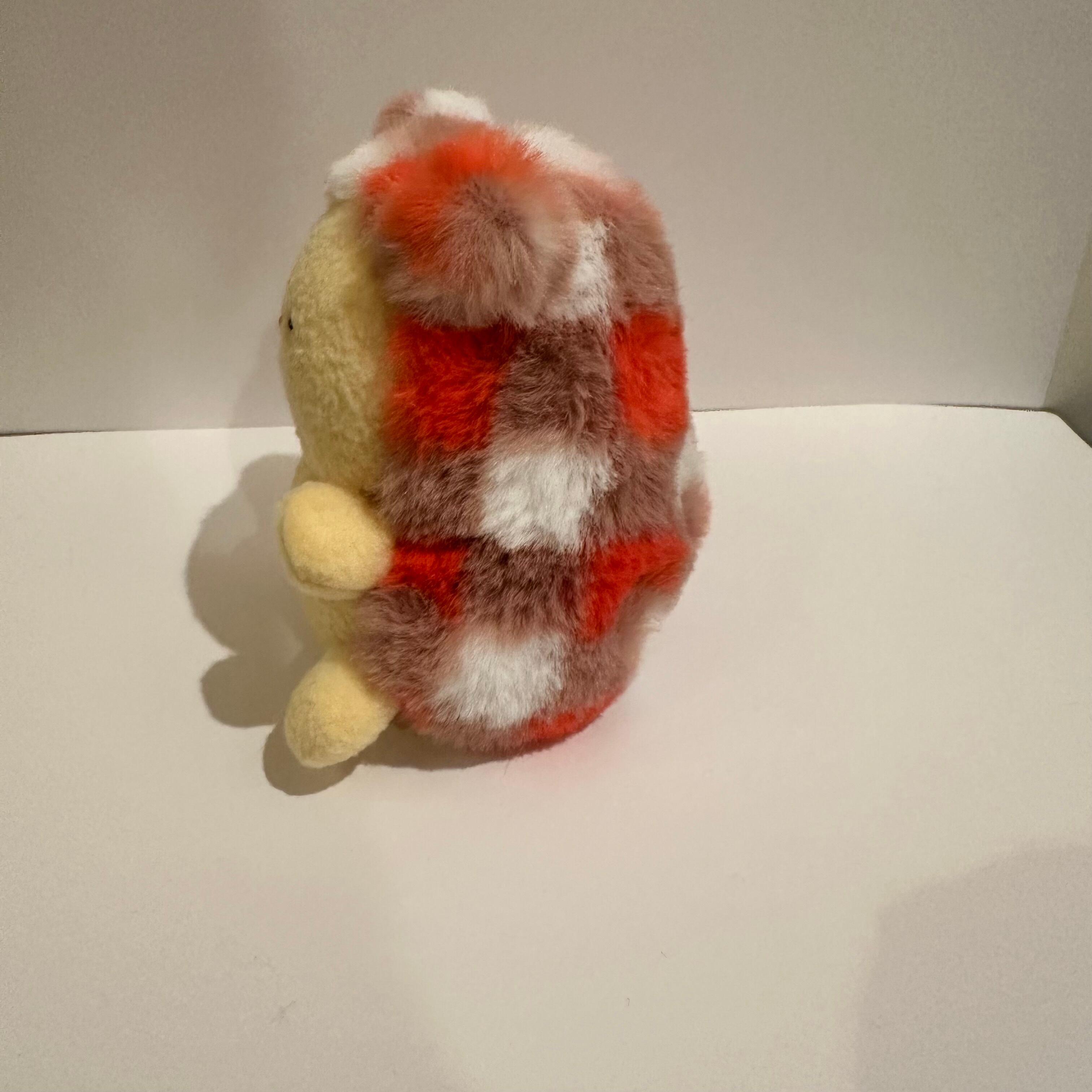 背中と耳はフサフサのファーを使用しています!それ以外は、ボテボテフォルムを出すために、フェルトのような生地を使用しています (正式にはアンチピリングフリースというもの)